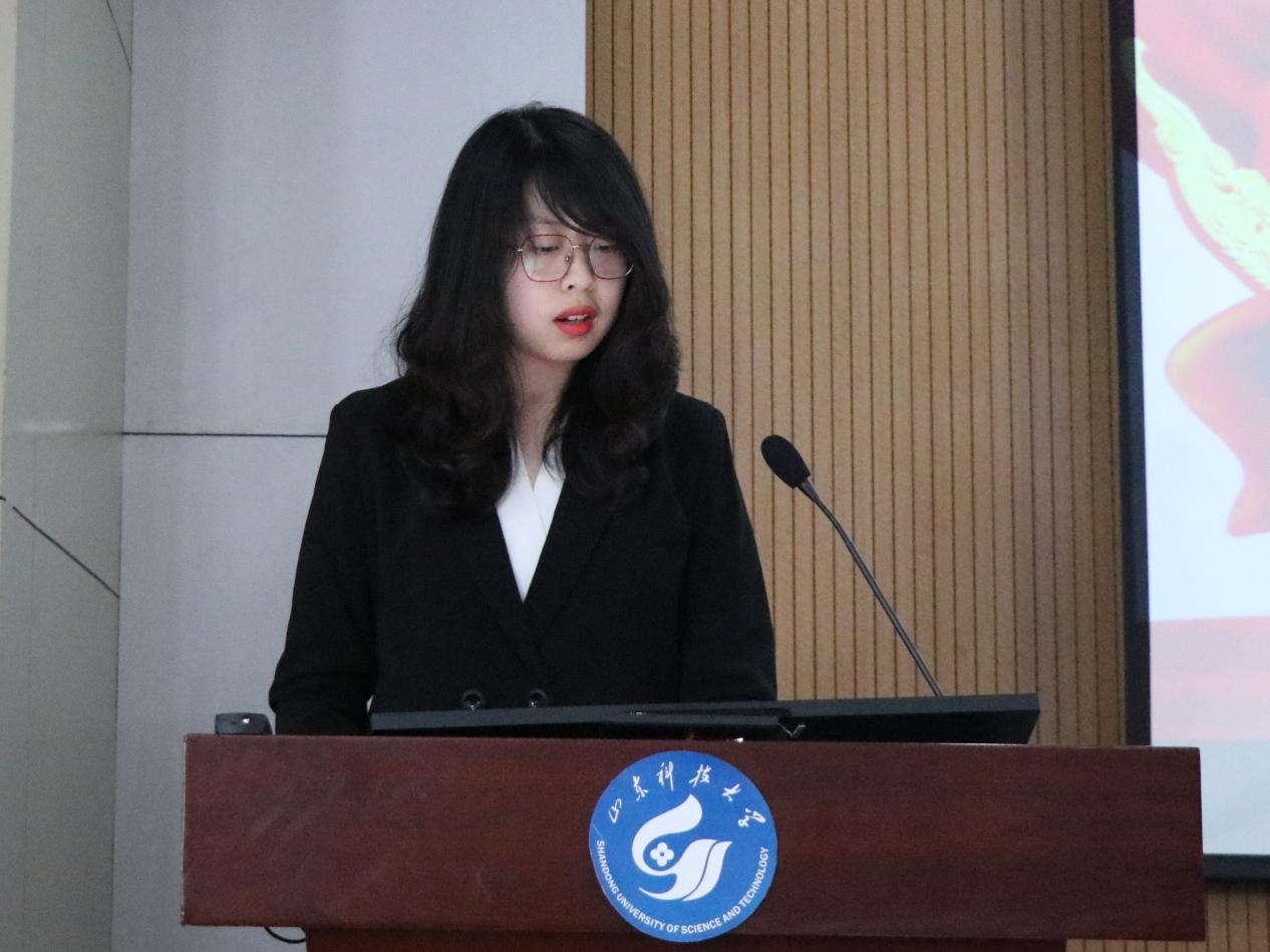 王梓涵是2020级第一批入党积极分子,她向同学们介绍了党的基本知识和入党的基本要求等内容,希望同学们进一步了解中国共产党,提高自己,充实自己,努力学习专业知识,向党组织积极靠拢,早日成为一名合格的共产党员。(通讯员:霍梦茹 潘伊若;摄影:潘伊若)