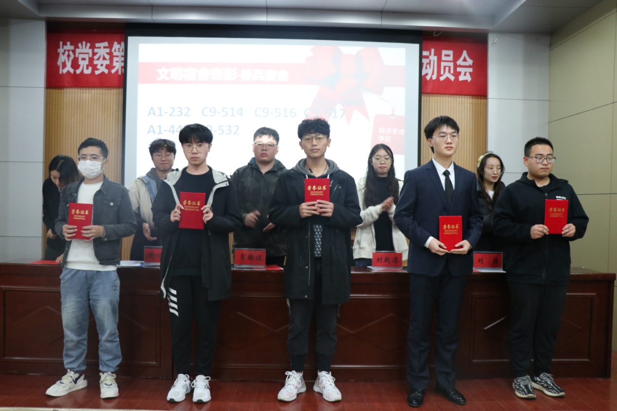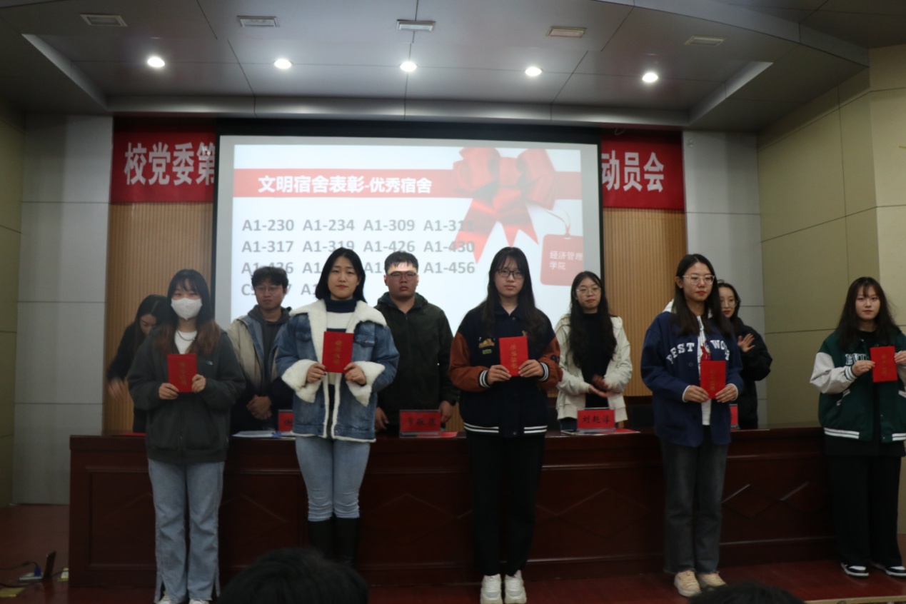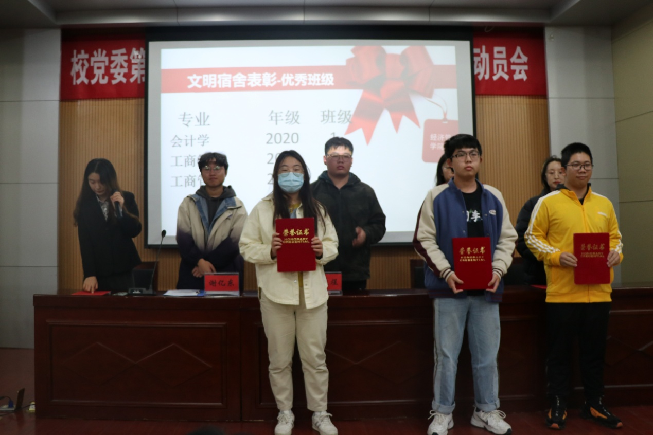 开幕式上,谢亿东宣读了A1-232等5个“标兵宿舍”、A1-230等13个“优秀宿舍”以及会计学20-1班等三个优秀班级的表彰名单。谢亿东表示希望借助基础文明建设月可以提高同学们创建文明宿舍的积极性,发扬团结互助,包容有爱的宿舍文明精神。标兵宿舍的代表金融学20-1班的李嘉乐在发言中说道:“宿舍其实就是我们的家,我们在这里收获友情和快乐,互相帮助,分担忧愁,在这里找到目标相同的人,共同奋斗。它不仅仅是我们大学时期栖身的住所,更是我们的精神寄托。”