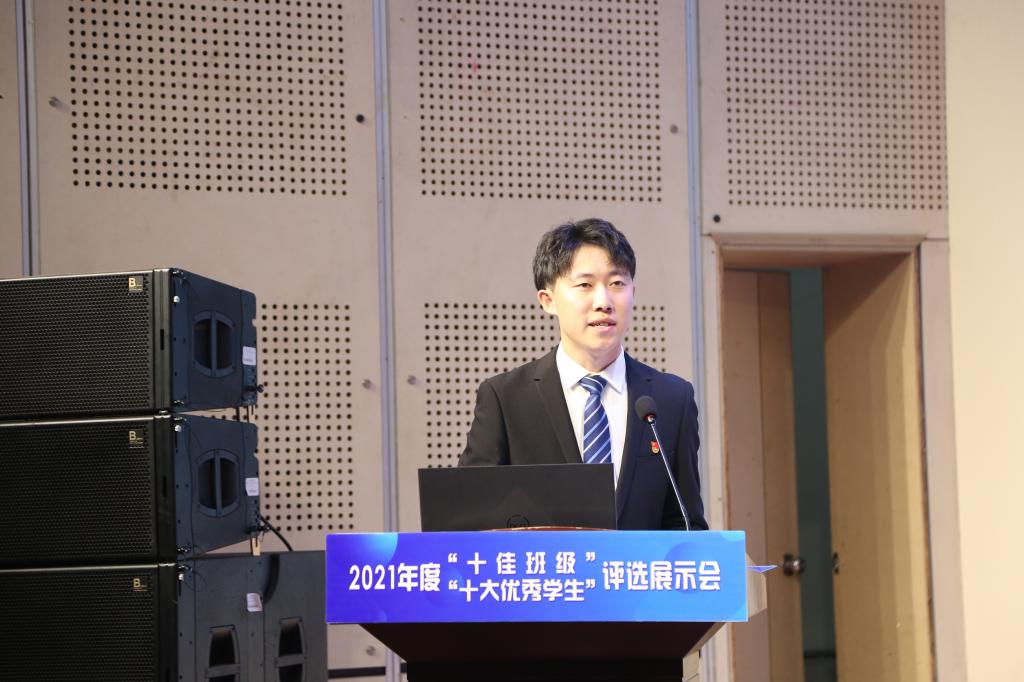 11月25日,在2021年度山东科技大学“十佳班级”和“十大优秀学生”现场评选中,我院工商管理2018级2班获评“十佳班级”称号、国际经济与贸易2018级2班彭佳辉获评“十大优秀学生”荣誉称号。