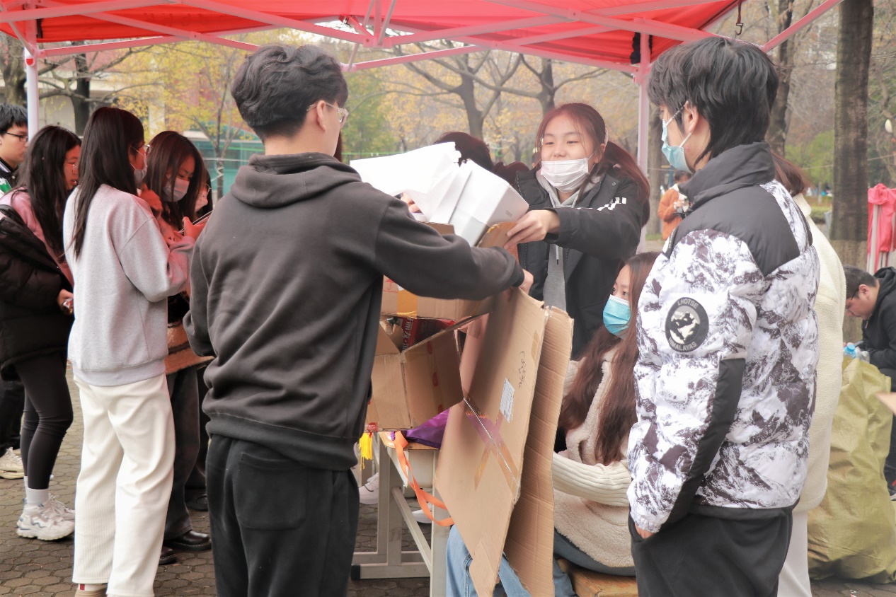 活动前期同学们以宿舍为单位收集好快递盒、塑料瓶等可回收物品,志愿服务部的志愿者们去各宿舍将这些物品收集起来,进一步助力资源的回收与利用。志服部为收集废品重量大的宿舍送上了一份精美礼品。