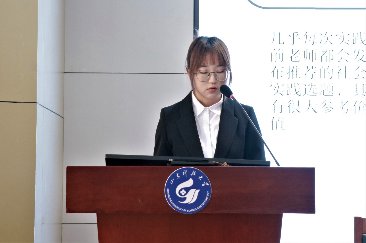 会上,胡雨涵分别从选题、组队、实践和总结四方面分享了自己在实践活动中的经验,强调了在实践活动的准备和实践阶段要多跟老师交流,及时分享自己的实践内容。曾瑾川从社会实践概述、个人社会实践经历和心得体会三方面介绍,激励同学们积极参加社会实践活动。张一静介绍了自己参加关于助残助困的社会实践活动,建议同学们应踊跃参加社会实践活动,丰富自己在社会实践方面的经历。