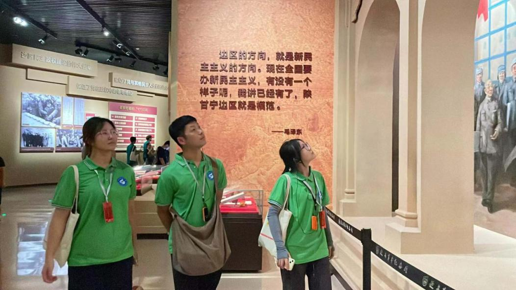 延安——一个承载革命历史的圣地,是中国革命的落脚点和出发点,为深刻学习延安这座城市的革命文化,实践团队来到延安市委党校,在树荫下,成员们坐在小马扎上认真倾听中国延安干部学院赵耀宏教授讲述党在延安的十三年岁月,仿佛重现了当年无数青年学子不远万里来到延安学习培训的身影。延安革命纪念馆里的一张张照片更是生动形象,一幕幕情节连成一部纪录片,在每位成员的脑海中重演播放。团队成员们忍不住感叹中国共产党的深远谋略和长远发展目光,党带领人民在延安走过的十三年岁月成为中国革命胜利的关键时期。