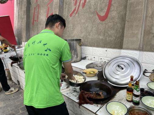 为深入体验党在延安时的生活环境,各实践团队来到延安市委党校,模拟三五九旅分班建制共同完成晚餐,体验“自己动手,丰衣足食”。步入厨房,实践团队化身小小炊事班,团结协作,制作出一道道美味的饭菜。在开饭前,各实践团队合唱军旅之歌,体味军旅之情。在此次实践活动中,实践团队成员切菜、做饭、洗碗,亲身体验了革命前辈们的延安生活,培育并弘扬了自力更生、艰苦奋斗的精神。