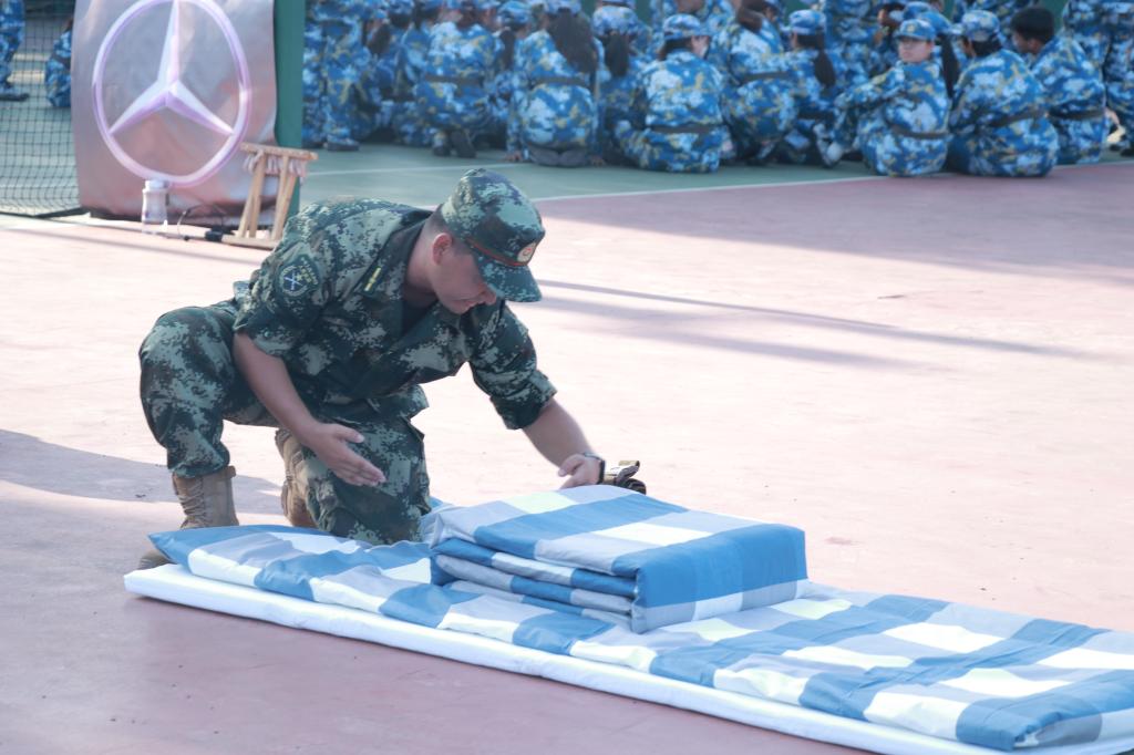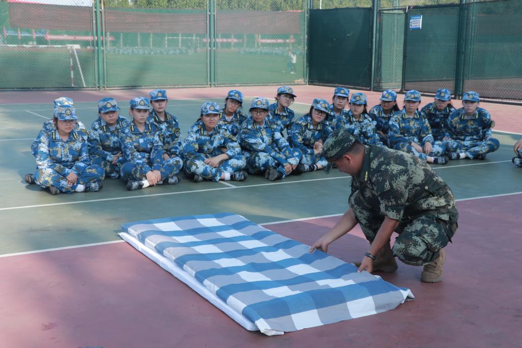 当青春遇上迷彩,英姿飒爽的经管学子,动作整齐划一,口号铿锵有力,展现着同学们团结一心的精神和严肃认真的良好作风。今天的军训课程从稍息和立正开始,还学习了快速蹲下和齐步走等技巧。每一个动作,每一处细节教官严格要求,同学们严格遵循教官的指令,通过努力,同学们的动作越来越熟练,并逐渐展现出军人的风采。休息间隙,同学们观摩学习了内务整理的相关内容,并组织进行了实践练习。