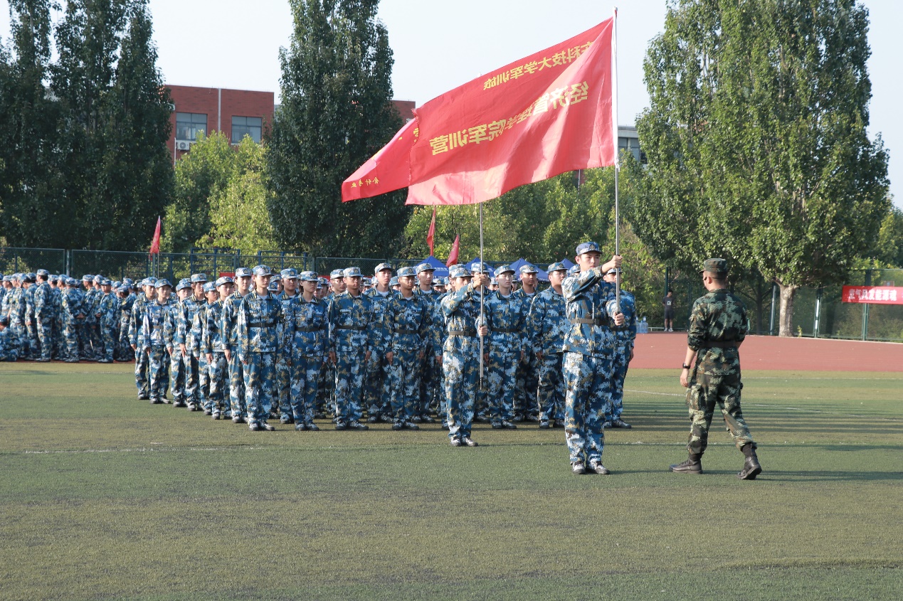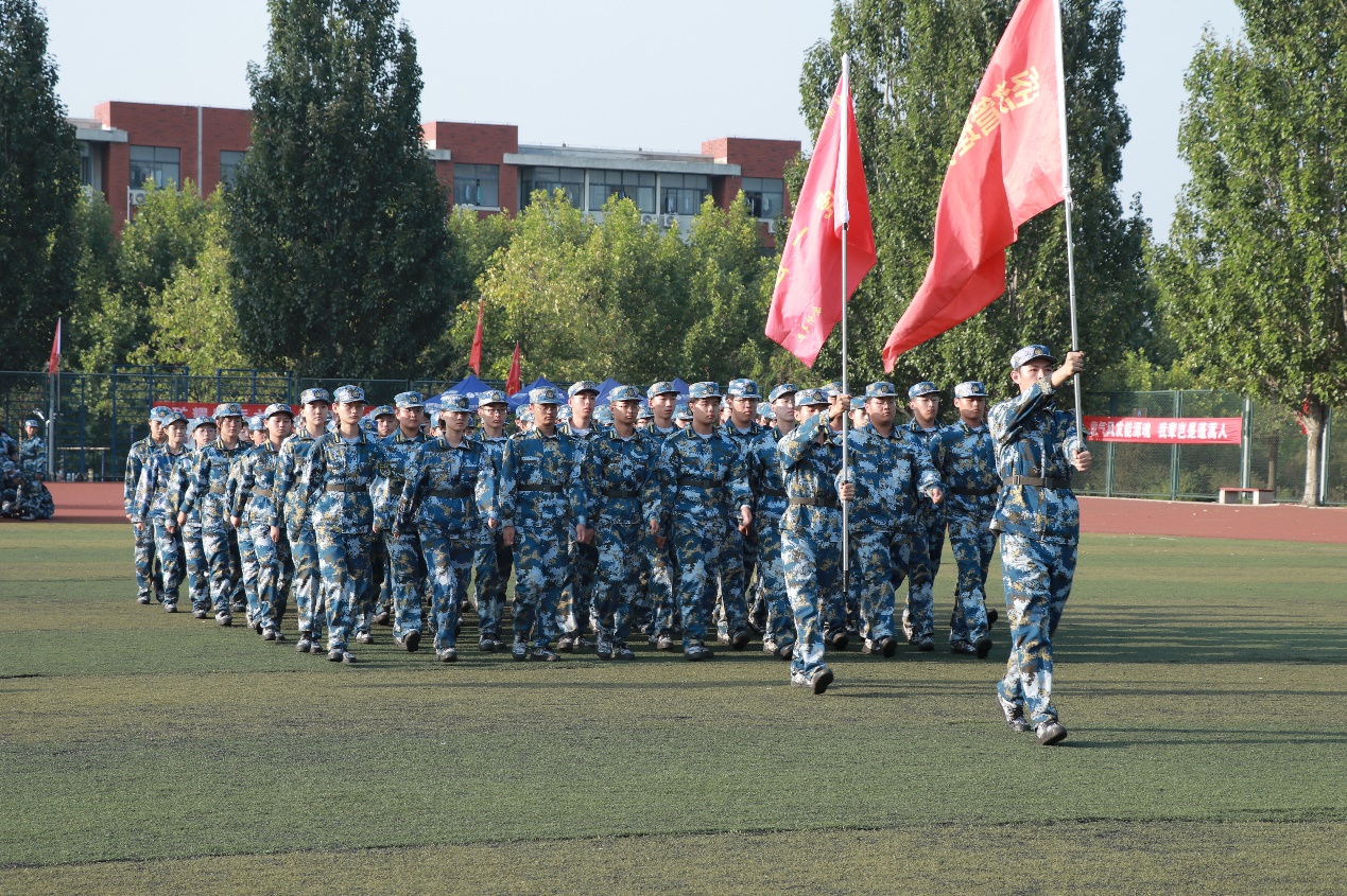出战旗!各连队在教官的口令指引下检阅场昂首挺胸地走来,旗手高举鲜红的旗帜,步伐有力、口号嘹亮、动作标准,精神抖擞,展示了经管学子的风采。刻苦地练习与汗水,一同变成了整齐划一的动作,标准挺拔的军姿。