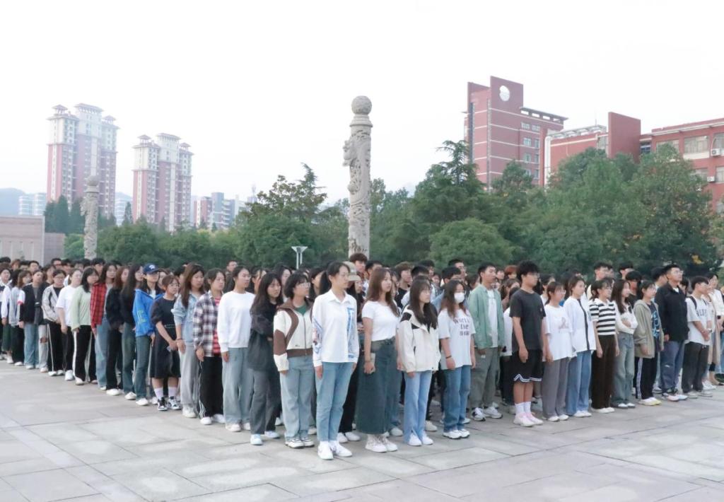 9月18日,必赢776net于泰山广场举行升旗仪式。必赢776net党委副书记兼副院长高一丹、全体辅导员、23级全体同学参加本次升旗仪式。
