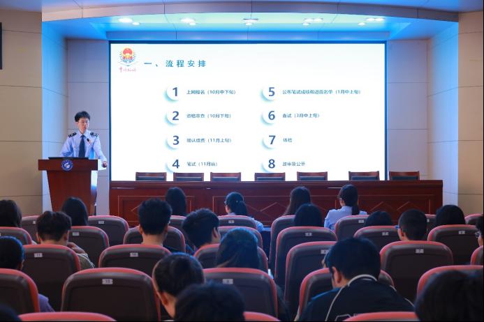 随后,开发区税务局的其余七名工作人员也依次分享了自己的考公经验和心得体会。其中,周霜、冯亚男、姜晨是我院毕业生校友,他们不仅对学弟学妹们传授了考试技巧,还寄予了殷切期盼。