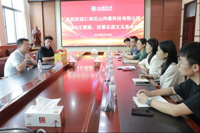 江谭对王雪毅、王玉泉的到来表示欢迎,并向他们介绍了学院乡村振兴直播工作室和服务乡村振兴宣讲团有关情况,希望与仁洲见山传媒科技有限公司建立全面、长期的合作关系。服务乡村振兴宣讲团成员代表参加座谈。