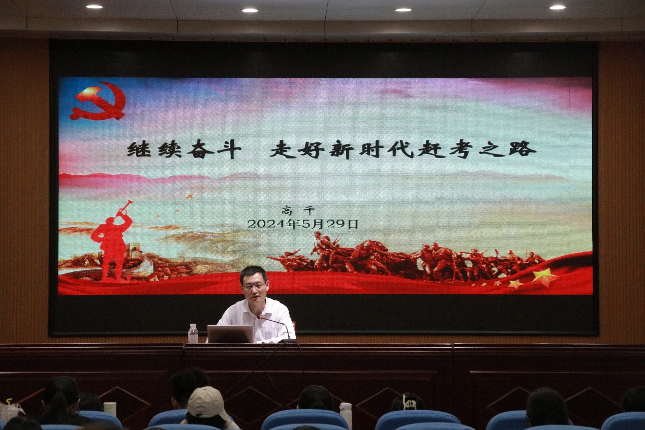 高千以“继续奋斗 走好新时代赶考之路”为主题展开培训,介绍了“时代是出卷人,我们是答卷人,人民是阅卷人”这一观点的深刻内涵;他从具备科学的理论基础和扎实的现实基础两方面讲述了在新时代如何走好“赶考之路”,他表示从个人,到社会,再到国家,都应该在赶考之路上接续奋斗;最后,他阐释了“革命理想高于天”的信仰追求,对我们青年未来发展前景做出了美好展望。