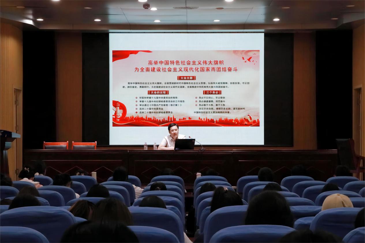 庄兴华以深入学习贯彻党的二十大精神为主线,向同学们介绍了党的二十大的基本框架和主要内容,详细解读了大会的主题、议程、和“三个务必”等内容;介绍了“十个明确”、“十四个坚持”、“十三个方面成就”等习近平新时代中国特色社会主义思想的核心内容,并以实例论证这些理论所带来的巨大成果。