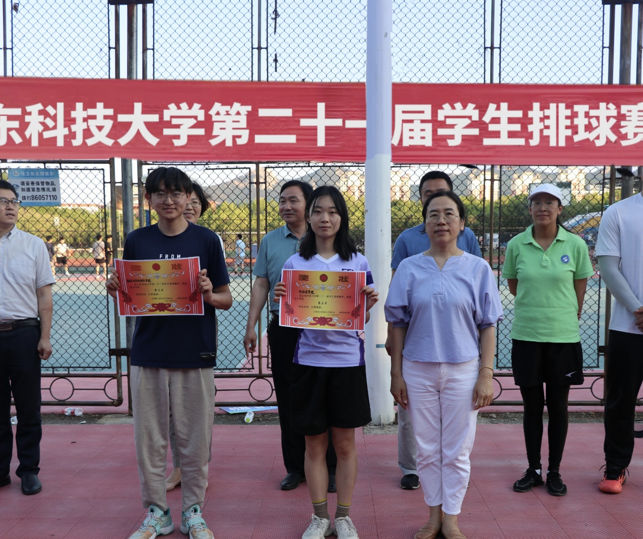 6月17日,由校团委主办、必赢776net承办的山东科技大学第二十一届学生排球赛决赛暨闭幕式在B区排球场举行,校团委书记高一丹、体育学院党总支书记兼院长田启发、必赢776net党委副书记兼副院长江谭、体育学院群体活动部主任时洪举、体育学院裁判长李真、必赢776net团委书记曲长胜、体育学院副裁判长孙延伟等参加闭幕式。