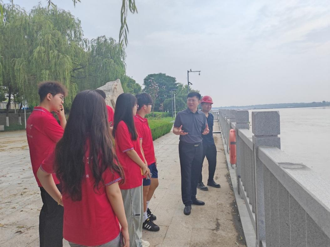 7月23日上午,实践团队来到滨州市滨开河务局进行调研,在公务科李靖康副科长的带领下,实践团队深入一线现场,与相关项目负责人展开交流,了解防洪工程及在建工程。在后续与科长交流过程中,实践团队深入了解系统全面的黄河流域生态环境建设和保护体系。