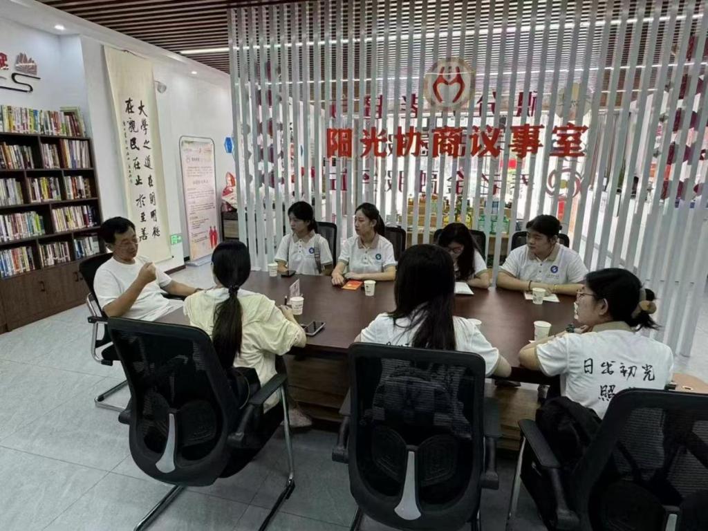随后,实践队与“中国好人”、日照政协委员、普天安泰负责人赵桂春,进行了座谈交流。赵桂春详细介绍了目前日照养老服务的发展现状与未来展景,实践队与赵桂春委员深入交流,共同探讨当下养老对象与养老服务的难点、痛点,以及老龄化与数字化发展所面临的一系列挑战。