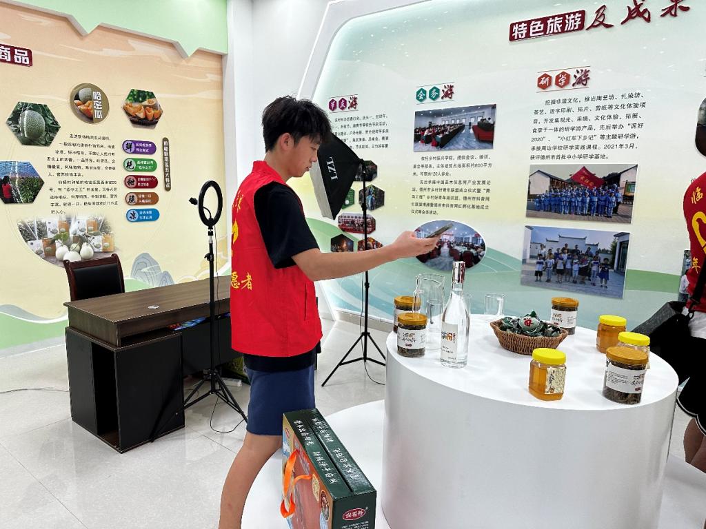 7月30号上午,乡村振兴服务队来到了山东省德州市临邑县前杨村开展乡村振兴社会调研。前杨村是一个新旧结合的村庄,在村庄中摆放有国丈井、石磨等老物件,在展现怀旧情怀,保持古韵的同时,前杨村以开拓创新的精神,打造“前杨记忆”品牌,利用电商直播平台销售本地特色扒鸡、寇家豆腐皮、盘龙里精酿啤酒等特色产品,为村集体经济的壮大开拓新的渠道。