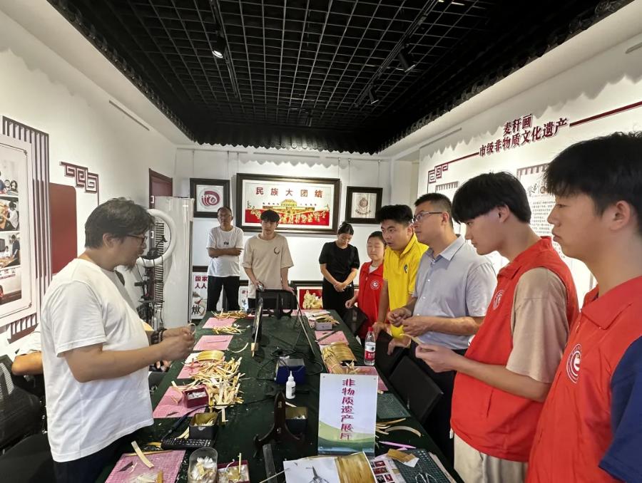 随后,实践团队走进“非遗工坊”——麦秆画工艺品制作中心,由传承人刘成峰老师向实践团队讲解麦秆画的制作过程。