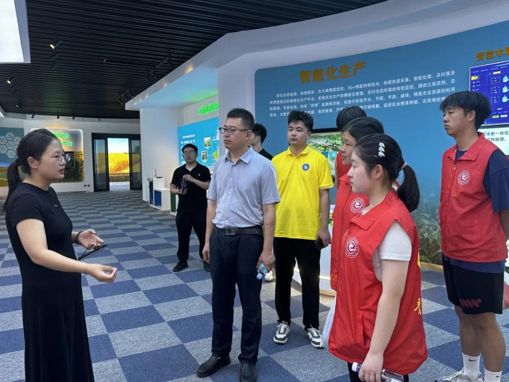 7月31号上午,实践团队来到山东省德州市临邑县德平镇富民家庭农场和华盛益农家庭农场开展乡村振兴社会调研。在富民农场展厅,实践团队进一步了解到当前田间工作机械化、数字化几乎实现完全覆盖,在智慧农业大数据体系下:应用遥感网、物联网、大数据、云计算、人工智能等数字技术,实现苗情、墒情、虫情、气象、肥力等数据的实时监测、分析和应用,为农户提供科学种植管理的决策方案,实现农业生产全过程的数字化、信息化、智能化。