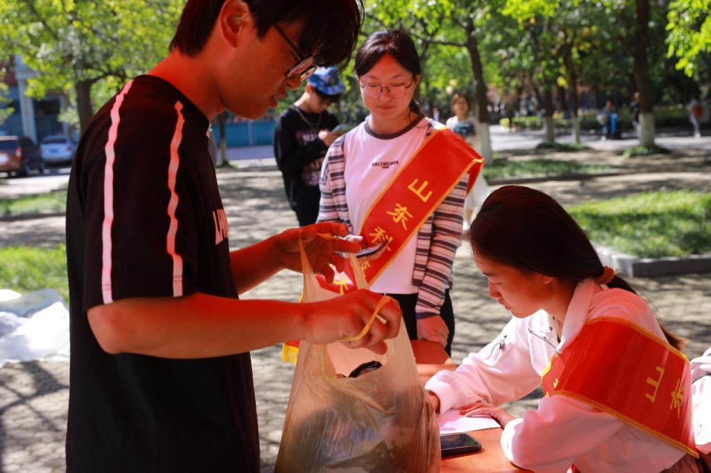 活动现场,同学们将一箱箱、一袋袋装满旧衣物的包裹整齐捐赠至志愿服务部。志愿者团队协助进行衣物分类、整理和打包,确保捐赠衣物的质量和整洁度。衣物回收后经过专业处理,或捐赠给需要的人,或转化为再生材料,从而提高资源的有效利用率。