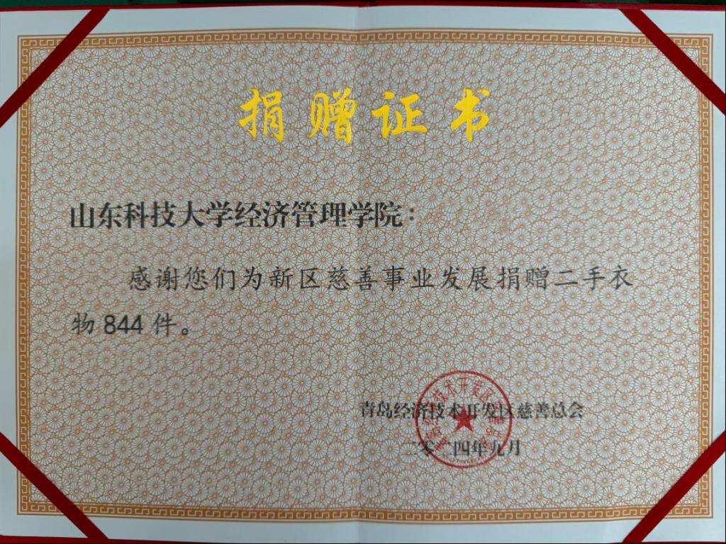 “衣”旧寄新情,爱心永传递。为了践行绿色环保理念,推广绿色生活方式,实现资源循环利用,9月,必赢776net与青岛经济技术开发区慈善总会共同携手,联合举办“‘衣’份真情传爱心,微芒造炬暖人间”旧衣回收活动。本次活动吸引了同学们的积极响应与广泛参与,现场气氛热烈。