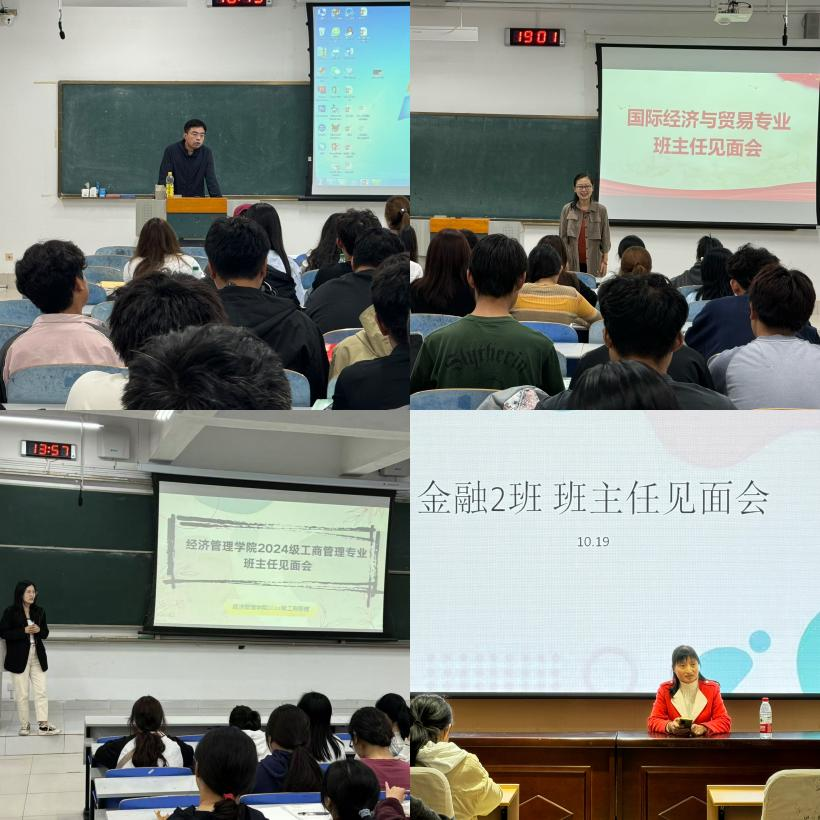 大数据管理与应用专业班主任郭延禄、彭伟,工商管理专业班主任吕晓菲,供应链管理专业班主任崔巍,国际经济与贸易专业班主任焦习燕,会计学专业班主任吴文文、张淑惠,金融学专业班主任蔡振坤、闻德美结合个人求学、工作经历,通过互动交流、现场问答、案例分析等方式,对专业特色、课程设置及就业前景进行了相关讲解,同时鼓励同学们加强互动交流,学好专业课程,高效利用资源,开拓个人视野,学会为人处世,合理规划目标,丰富个人阅历,不断提升核心竞争力。