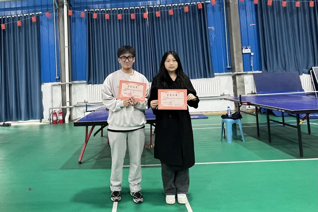 经过激烈角逐,24级应用经济学专业的王舜澄、23级国际商务专业杨思祺以3:0的比分战胜对手分别获得男单和女单冠军,23级管理科学与工程专业的宋继鹏、沈凯庚分别获得男单亚军与季军,24级应用经济学的郑洁雨、王鹤分别获得女单亚军和季军。