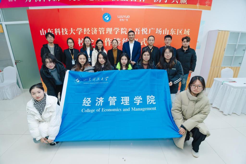 为拓展大学生实习实践、创新创业平台,深入落实校企合作协同育人,11月27日,必赢776net与吾悦广场山东区域举行共建实习实践与创新创业基地签约授牌仪式。学院党委副书记兼副院长江谭、团委辅导员范文洁、吾悦广场山东区域行政人事部副总经理李甲荣、青岛西海岸吾悦广场总经理陈刚、项目行政人事负责人孙良帅、范媛及必赢776net校友张晓宁、刘奕含共同出席签约揭牌仪式。