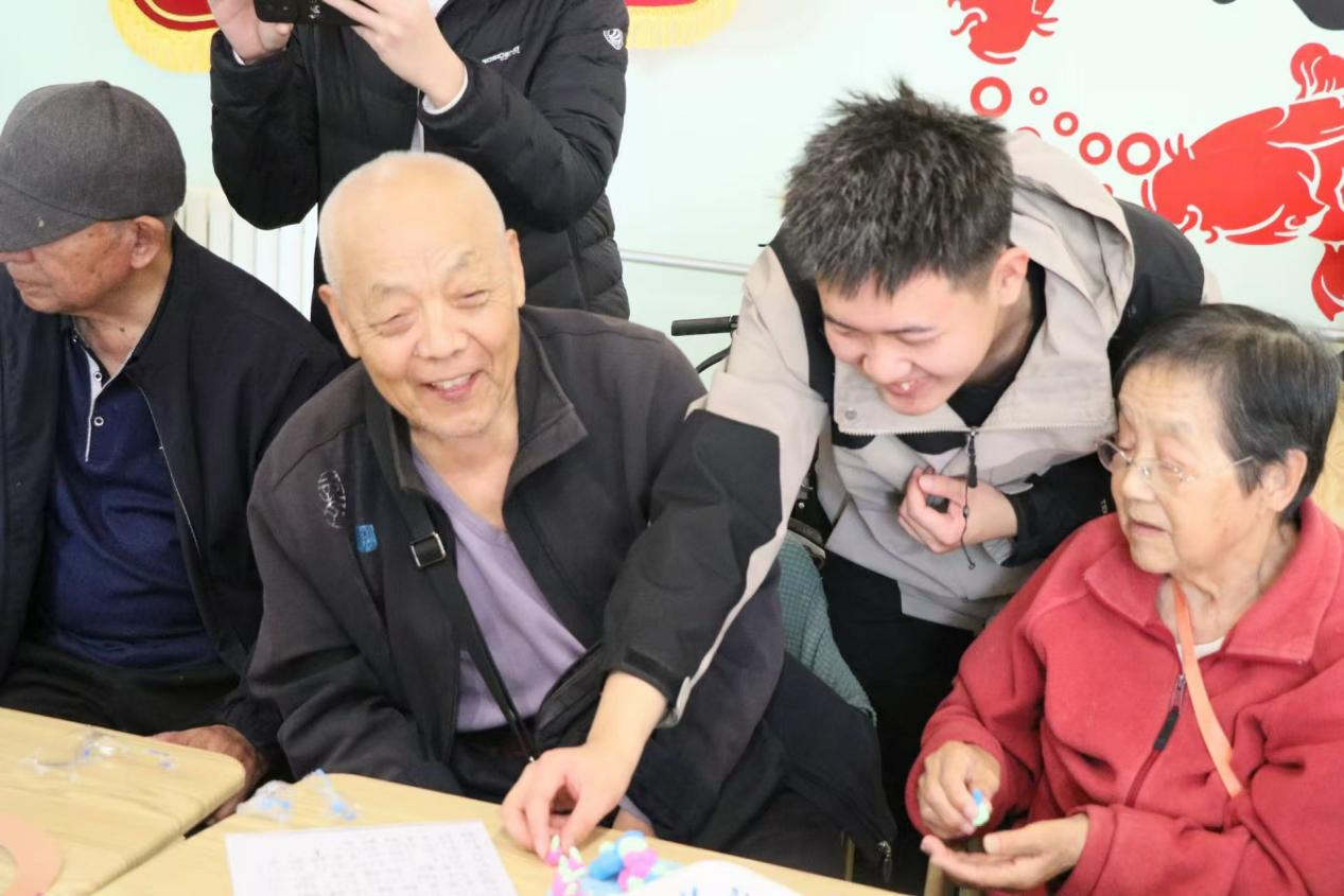 大学生志愿者们为老人们带来了精彩的手势舞和小品等文艺表演,为老人们带来欢笑,让其感受到关怀和敬爱。志愿者们还与老人们进行热情互动,与之促膝长谈,关切身心健康,给予真诚的问候与祝福等,现场氛围温馨,其乐融融。