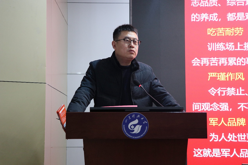 曲长胜向同学们介绍了学院征兵工作基本情况、思路举措以及所取得的成效,其间提到军营是大学生锤炼意志、增长才干、培养品质的大熔炉,拥有广阔的发展空间和机会,鼓励引导青年学子携笔从戎,投身军营,挥洒青春热血,为祖国的国防事业添砖加瓦。艾孜买提·买买提以“到祖国最需要的地方建功立业”为题分享了自己的军旅生活和部队学习成长经历。吴耀国从个人经历、入伍原因、部队生活和个人感悟等四个方面向同学们介绍了应征入伍条件以及大学生优待政策,鼓励广大学子积极投身国防事业。苗渊博详细介绍了地方入伍、考学提干等内容,加深了同学们对军旅生涯的客观认知。