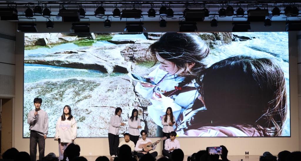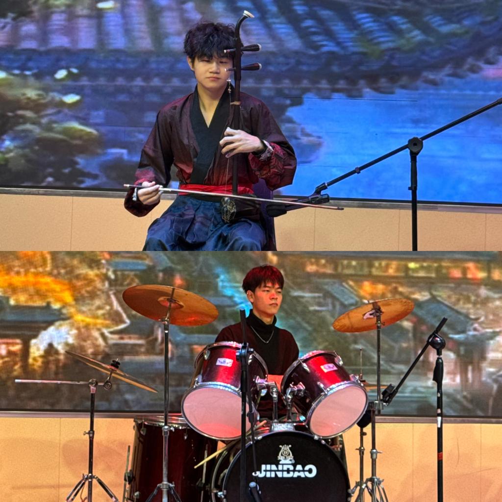 本场联欢会分为“青青子衿,志怀国家”、“冉冉向新,执光开路”、“灼灼风华、向阳逐梦”、“巳巳如意,笃行向光”四个篇章,内容丰富,形式多样,精彩纷呈。音乐情景剧《剩下的盛夏》拉开了联欢会第一篇章的序幕;“明日复明日,明日何其多”,小品《谁逼疯了周日》为“拖延症”同学敲响了警钟;时尚走秀《Back to Me》展现了大学生昂扬向上的青春气息;《小人舞串烧》形式新颖,生动活泼。第二篇章,《寄明月》,中西乐器的完美碰撞,音乐舞蹈的巧妙结合,为观众带来了一场视听盛宴;李植坚独唱《空心》融合情感与技巧,令全场为之动容;小品《00后上岗》、朗诵《我爱上学》适度用梗,充满创意。第三篇章,音乐情景剧《达拉崩吧》、《舞蹈串烧》、《情歌串烧》展现了大学生青春洋溢、多才多艺的精神风貌;小品《非诚不找》则金句不断,逗笑全场。第四篇章,《创意舞蹈串烧》,热力四溢,炫动全场;办公室小品《烽火中国》,亦庄亦谐,表达了青年学子的拳拳爱国情;2024级辅导员及兼职辅导员带来的舞蹈表演《我的未来式》让全场沸腾,活力四射的舞蹈背后更是饱含了对同学们的祝福与期盼。“心中的紫荆花,凭爱开花,同处一家……”,晚会在声乐队和全体演职人员的大合唱《紫荆花盛开》下缓缓落幕,以青春之名唱响爱国主旋律。