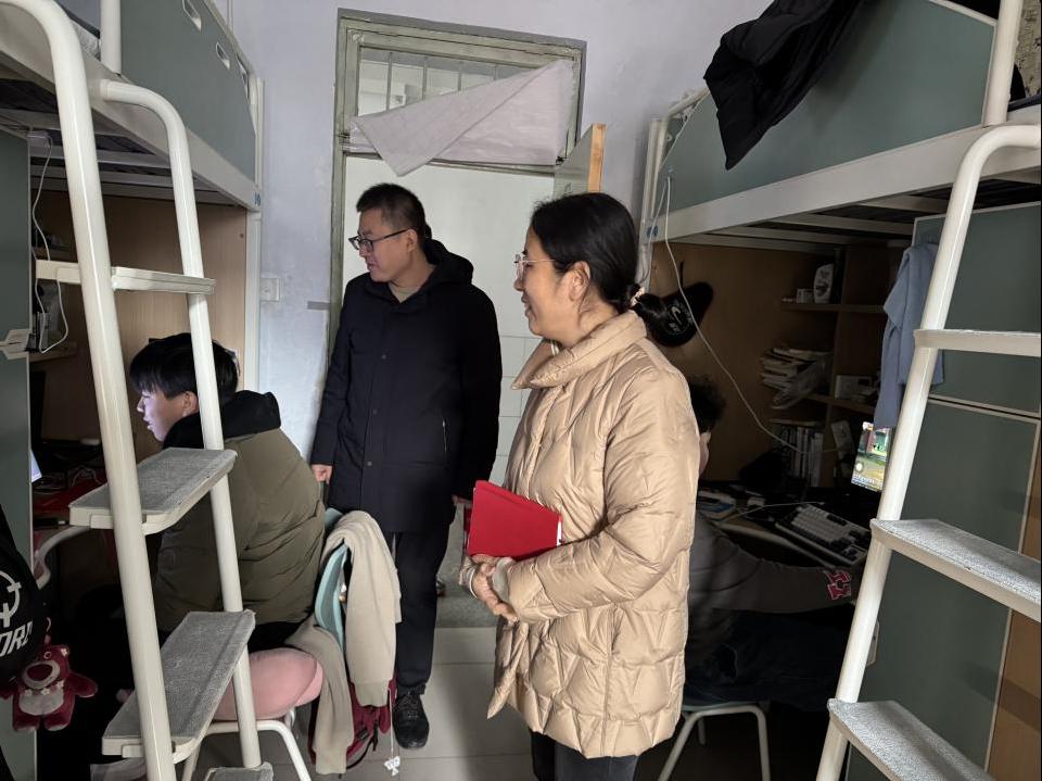 走访过程中,领导老师与学生进行亲切交谈,了解学生思想动态、返校适应情况和成长需求,叮嘱同学们提前制定新学期学业生涯规划,筑牢公寓安全意识,加强体育锻炼强健体魄。同时,辅导员们对学生宿舍进行安全卫生大排查,重点对宿舍用电安全、消防设施、违规电器使用等情况进行了细致检查,对有问题的宿舍及学生进行问题记录、批评教育,限期整改。