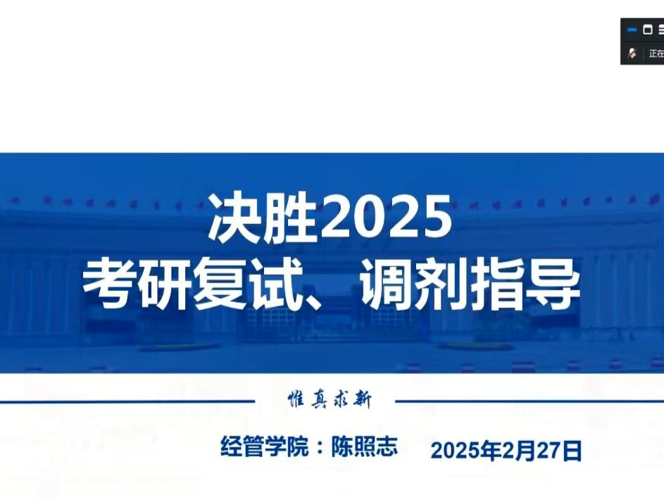 为做好2025届本科毕业生考研复试及调剂指导工作,2月27日,必赢776net举办“‘研’途相伴,不负韶华”线上考研调剂经验分享会,邀请辅导员陈照志以及2020级毕业生袭雪怡、李然和田雅楠三位同学分享调剂技巧和经验。分享会由辅导员范文洁主持。