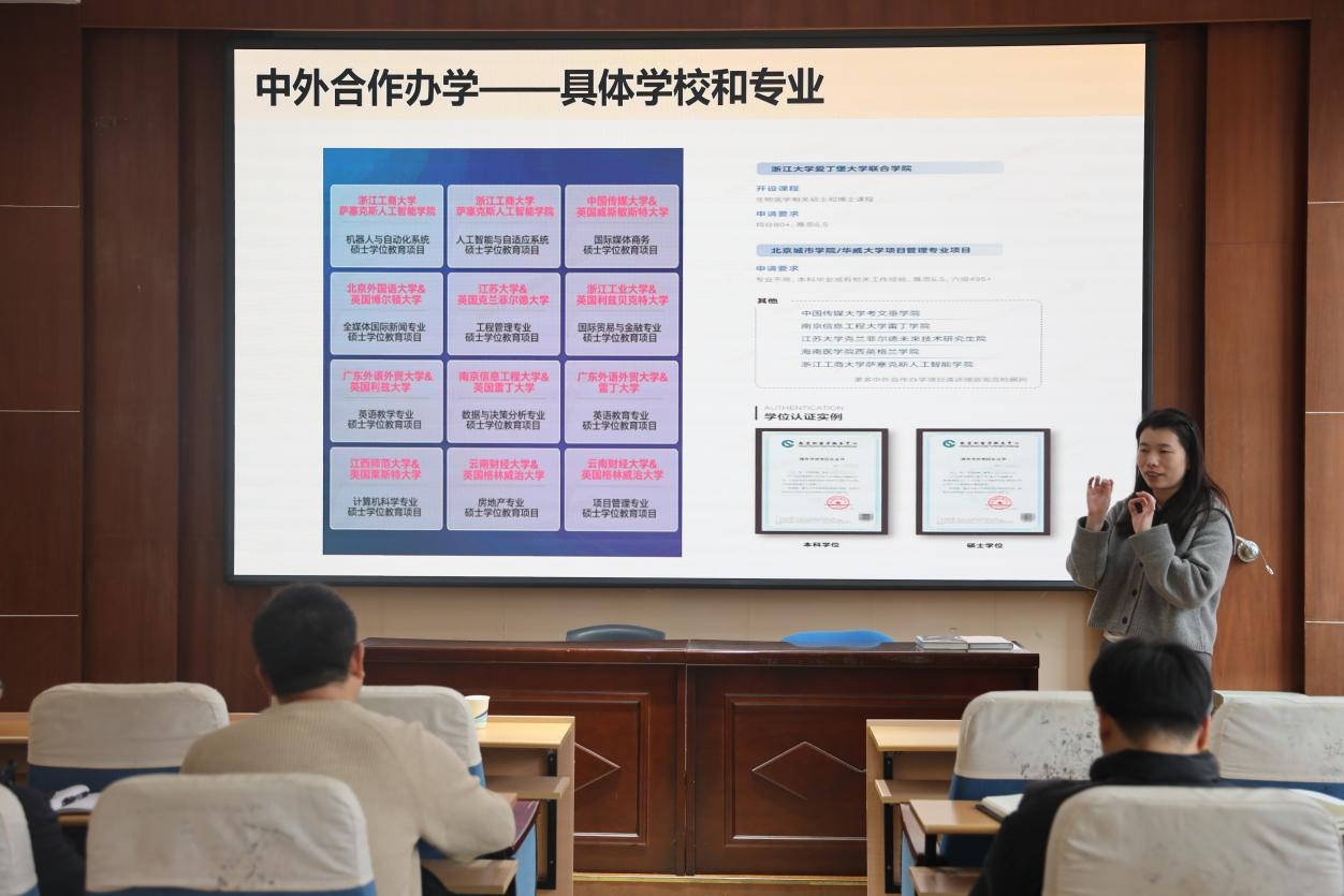 通过此次讲座,老师们对硕士留学和中外合作办学项目有了更清晰的认识,有利于直观了解留学政策与渠道,帮助学生规划多元化升学路径。(通讯员:于鹏伟 刘雨田)