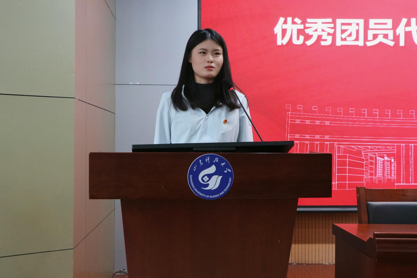 新团员代表胡敬涛在发言中勉励青年团员珍惜荣誉,奋力有为,以学为基,做求知探索的追光者;以德为本,做文明风尚的践行者;以行为要,做躬身实践的奋斗者。优秀团员代表刘颖宇结合自身经历鼓励青年学子要在思想上坚定理想信念,在行动上恪守团员标准,始终保持积极进取的精神状态,努力实现德智体美劳全面发展。