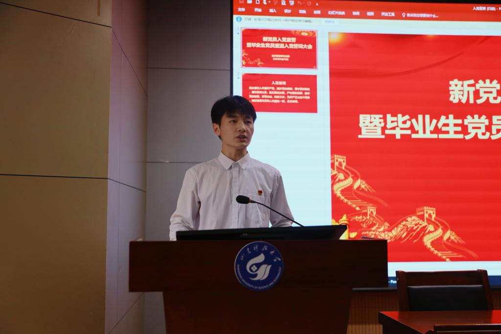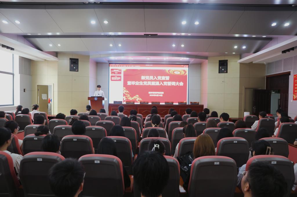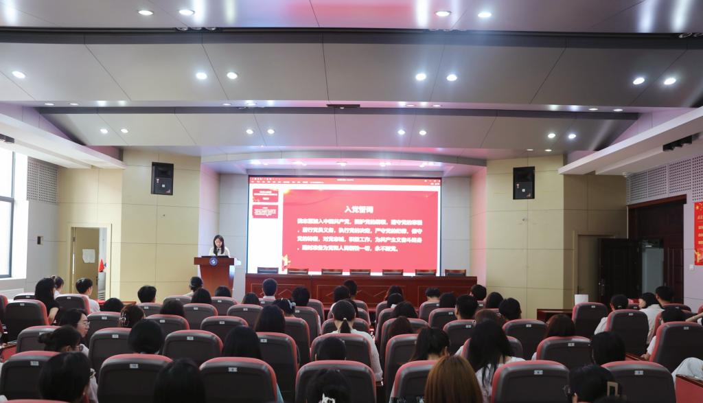 6月18日,必赢776net于学院楼四楼报告厅举办必赢776net新党员入党宣誓暨毕业生党员重温入党誓词大会。必赢776net党委副书记江谭、团委书记曲长胜、全体辅导员、全体党员参加了本次大会,大会由辅导员逄楚铭主持。