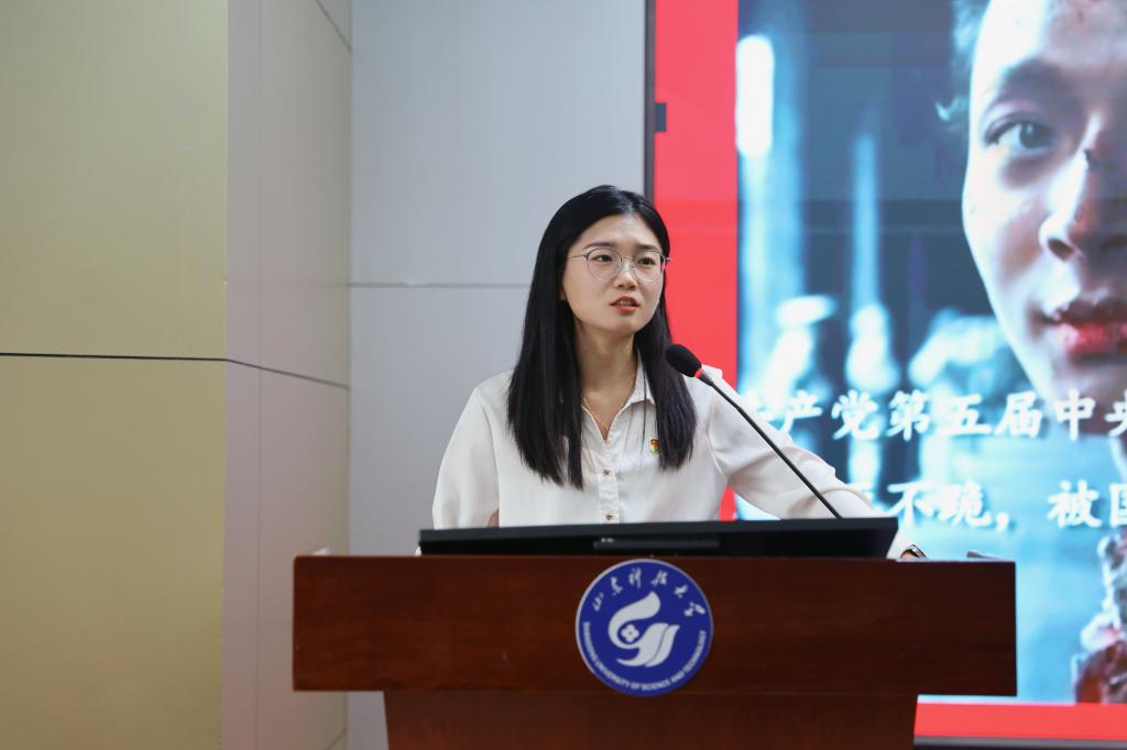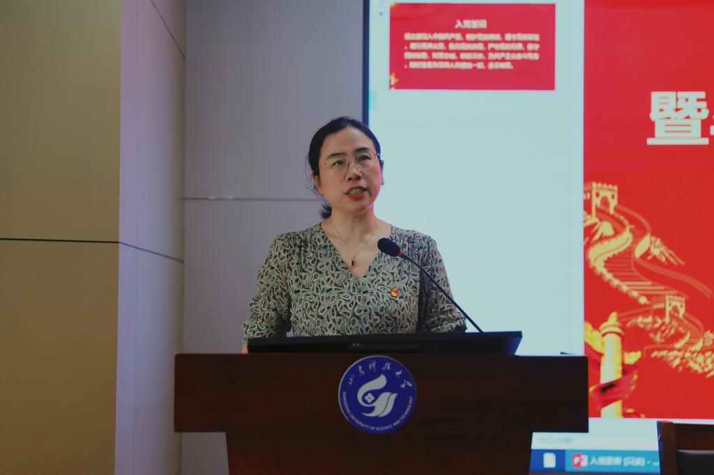 毕业生辅导员范文洁以“永葆党员本色,砥砺奋进新征程”为主题为全体毕业生党员讲授最后一堂党课。课堂上通过播放优秀党员事迹视频,引导党员们深刻感悟共产党人的初心使命和担当精神。同时,对毕业生党员提出三点希望:一是坚守初心,无论身处何种岗位,都要牢记党员身份,始终保持政治定力和理想信念;二是勇担使命,在科技创新、乡村振兴、基层治理等国家战略中主动作为,展现青年党员的担当;三是永葆本色,面对困难挑战时,始终以更高标准、更严要求锤炼党性,用实际行动践行“请党放心,强国有我”的青春誓言。