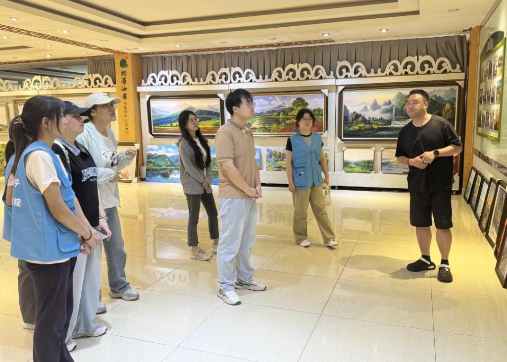 在绿泽画院,团队成员感受了达尼画家村的发展历程,了解了街道推动从一张油画到百花齐放的经验做法,在艺术熏陶中更深刻地理解了“文旅赋能”对乡村振兴的意义。除了探索历史、观赏画作,团队还观看了绿泽画院抖音直播间的直播现场,万数粉丝“围观”画家创作,写实风景等题材的油画销售火爆。这让同学们直观感受到数字赋能对于乡村振兴的重大意义,认为艺术与电商结合的模式让文化价值转化为经济价值,为乡村振兴注入了“美”的动力。