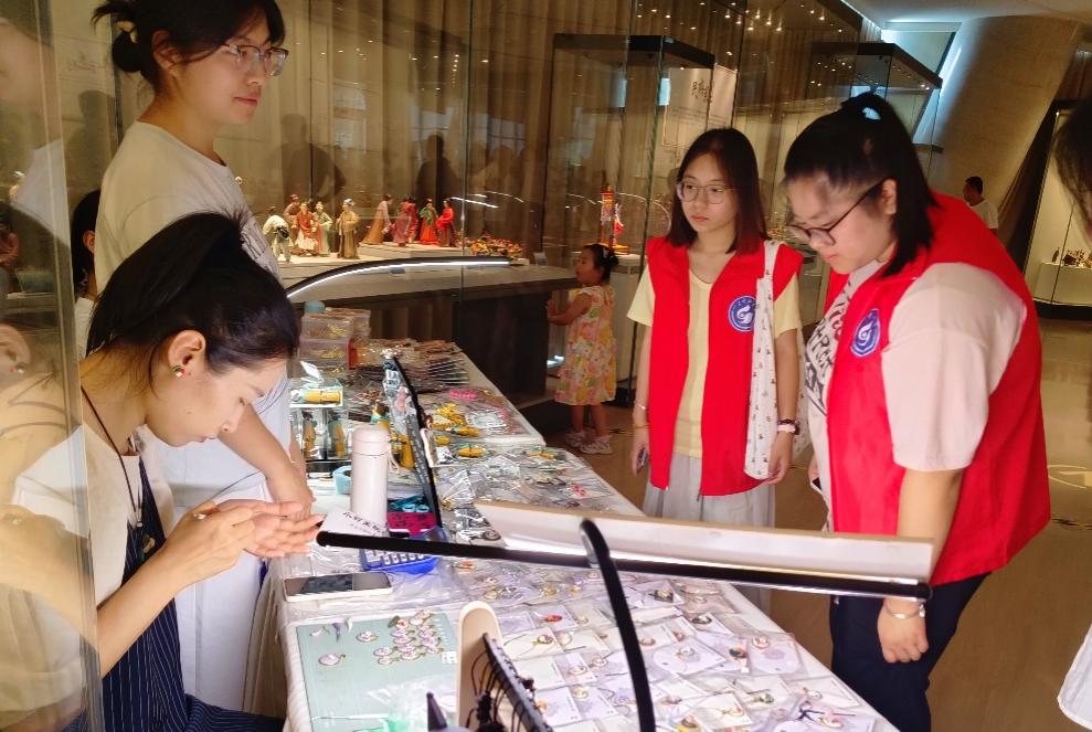 7月26日,实践队进入“五层展厅,八大展区”场馆,在1-3层古代展厅中,系统展示着从西周、战国、汉代到明清中国古琉璃的发展史,镇馆之宝北朝青釉莲花尊则是古代北方青瓷的典型代表。各大展厅和各类展品展现出古代工匠制瓷高超的技艺,以及齐地文化与匠心精神的传承。在实践过程中,队团队成员对馆内游客学生进行现场采访,邀请他们填写问卷,调研琉璃博物馆现存问题以及改进方向。