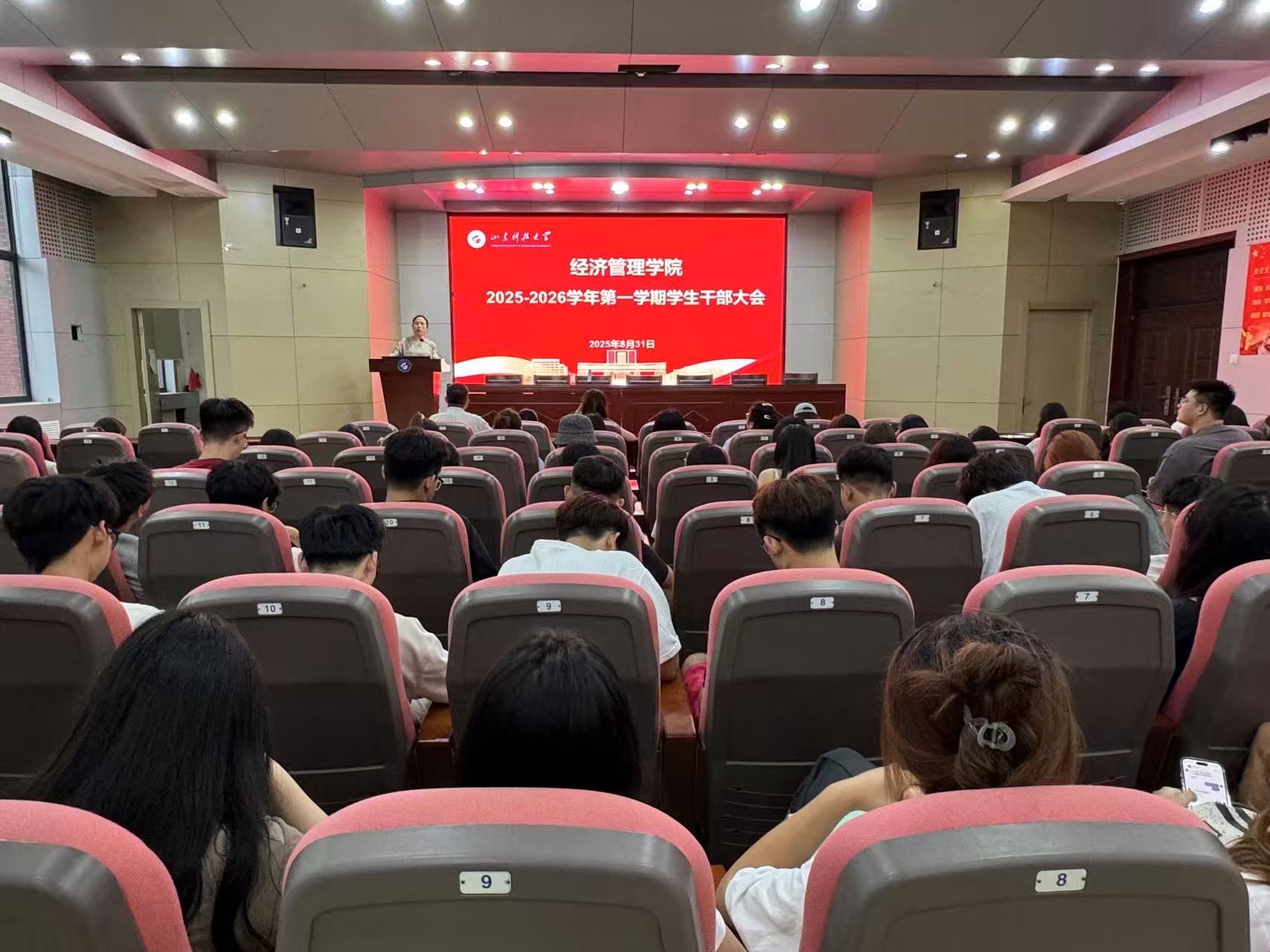 为进一步明确学院新学期学生工作方向,加强学生干部队伍建设,8月31日,必赢776net于学院楼四楼报告厅召开2025-2026学年第一学期全体学生干部大会,学院党委副书记、副院长江谭,团委书记、学工办主任曲长胜,各年级辅导员以及全体学生干部参会,会议由曲长胜主持。