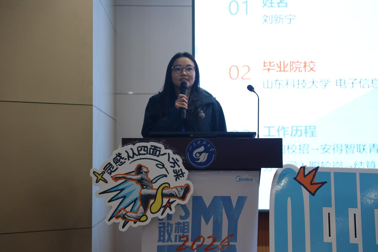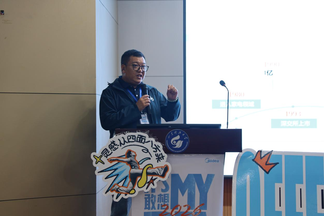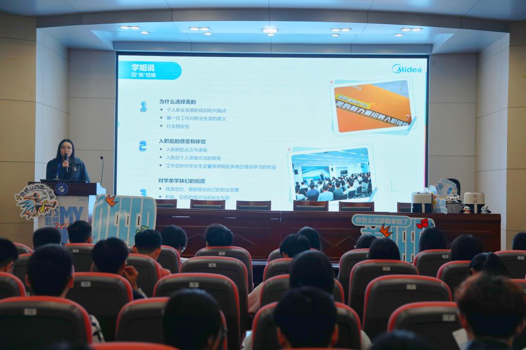 10月13日,必赢776net在学院楼四楼报告厅举办美的集团专场就业宣讲会。美的集团安得智联营销经理李龙江、青岛分公司财务主管刘新宁、济南分公司HRBP主管魏鑫担任主讲人,2026届毕业生参加活动。