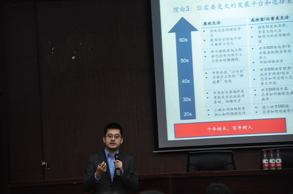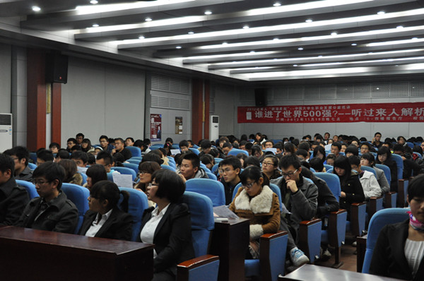 围绕本次演讲主题——“谁进了世界500强”,Victor Liu以自己的观点和经历为主线,从不同等级公司的薪酬层次进行讲解,提出薪酬金字塔的概念,向同学们展现了严峻的就业问题。他重点解析了500强公司招聘最看重应聘者的哪些素质,以及怎样挖掘自我的求职竞争力等问题。Victor Liu分析了同学们要努力进入世界500强企业的理由,并对同学们提出了具体的求职步骤:一是要从大一开始打好基础;二是要尽早准备相关的资料;三是要重视面试。Victor Liu风趣幽默的讲话方式和贴近生活实际的演讲内容得到了在场同学的热烈回应,也引发了同学们的深思。