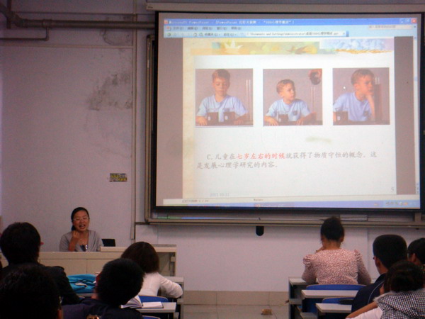 李老师以“何为心理学”这一话题开始了此次讲座,她以发展心理学、社会心理学、生理心理学等方面的实例与同学们互动,并以“人做梦需要多长时间”等问题为引子,向同学们讲述了心理学领域许多趣味横生的知识。在向同学们介绍了心理学基本概念后,李老师对新生们如何拥有健康快乐的大学生活做出了指导,她要求大家主动建立新的生活圈子,尝试摆脱“回归心理”,进行情感转移;要积极参加各种活动,培养集体感、成就感;最重要的是进行人生目标规划,每天进行积极的心理暗示,塑造更加健全的人格,不使四年的大学生活碌碌无为。李老师的精彩演讲,得到了同学们阵阵掌声。